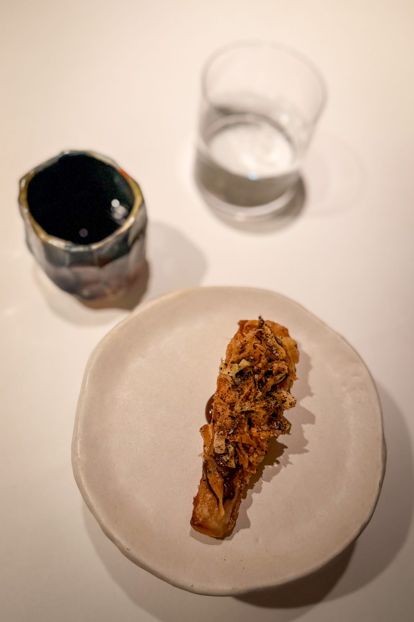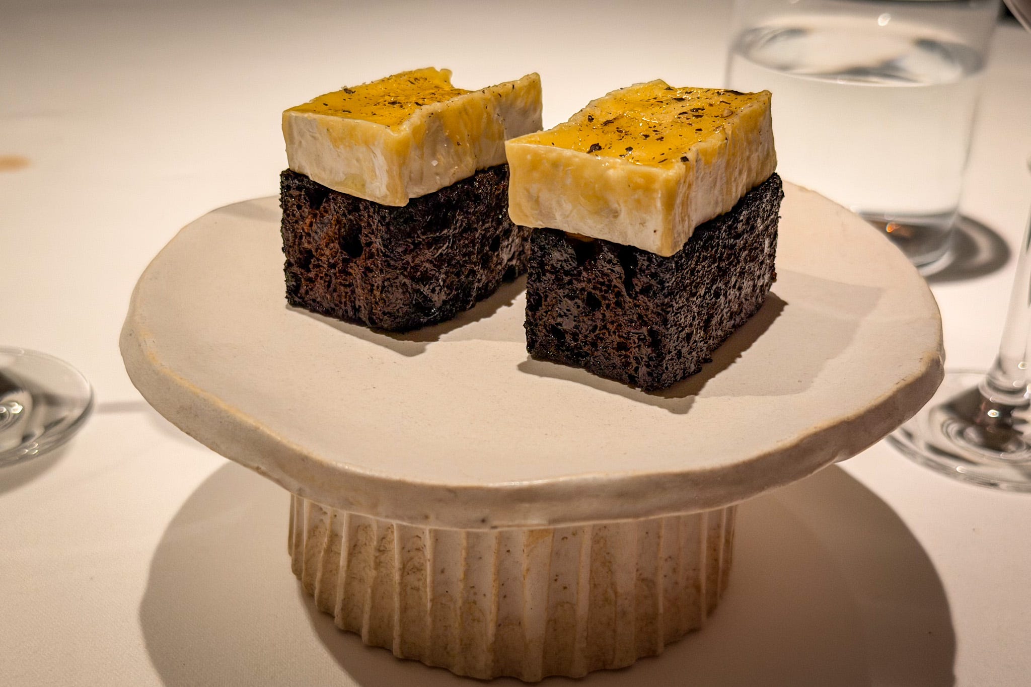 Next, the kitchen dispatches a silo of snacks while we stretch out in the lounge, just like FZN or Row. These are the first rounds from one of the two ten-course tasting menus on offer for dinner: the Classics or the Signatures menu. We are Classic people, but we acquiesce to one supplement. More on that later.